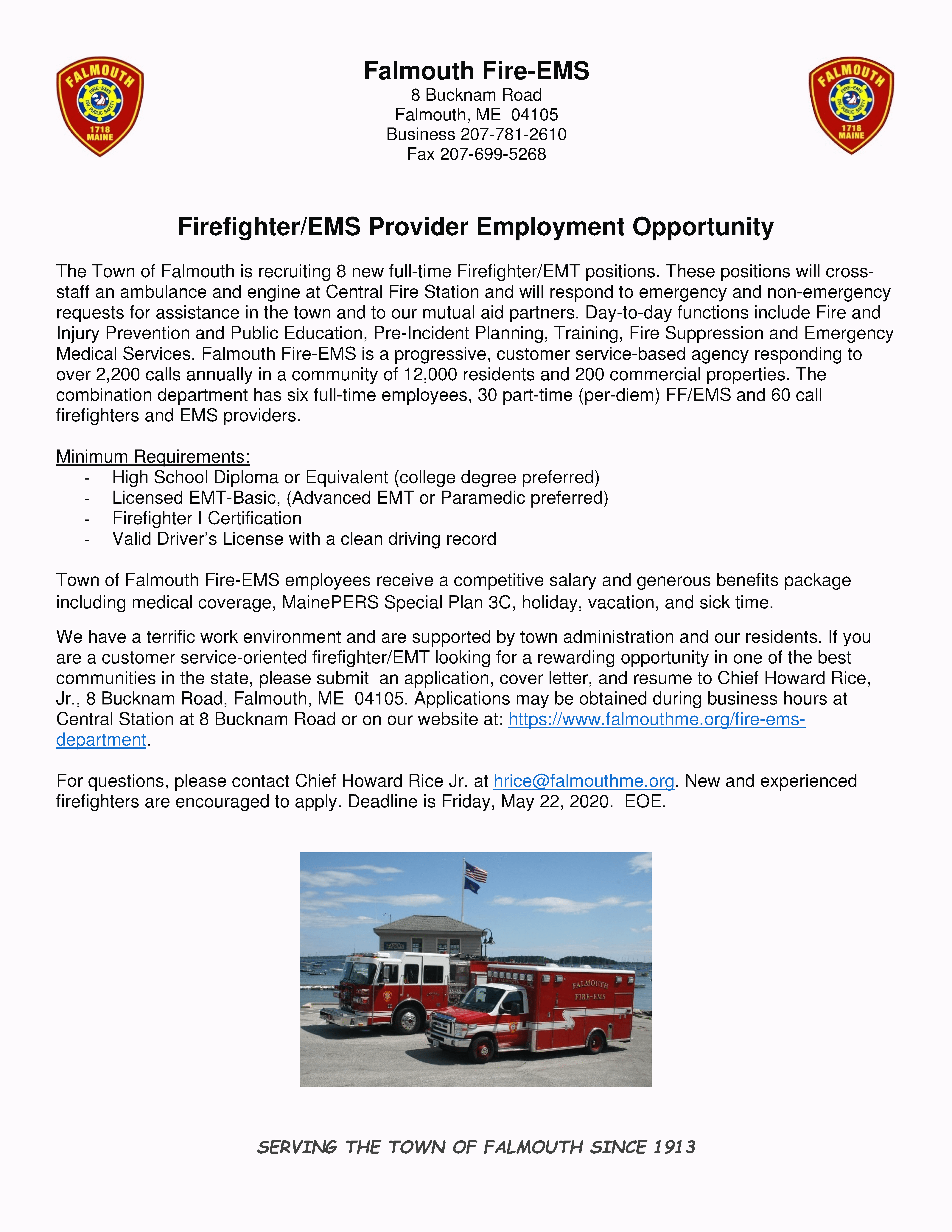 Flyer for 8 New Positions Fire_EMS May 2020